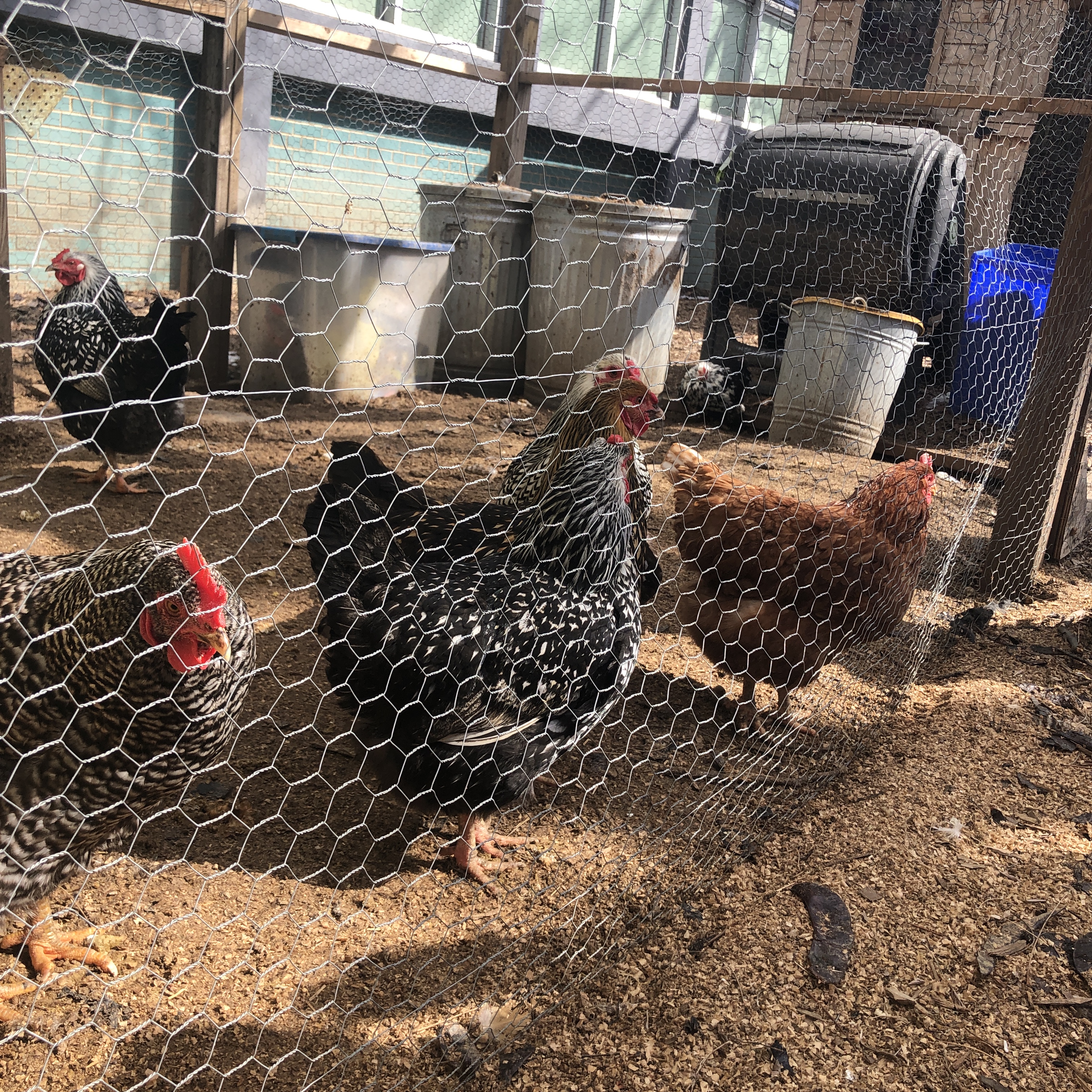Some of the famous 754X chickens, emerging for their meet and greet with the teachers