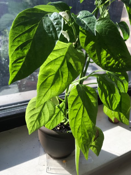 We had to get rid of four plants — the big gherkin and cucumber, the tomato and eggplant. They went outsides to try their luck with the polinators there, as they were not bearing any fruit.