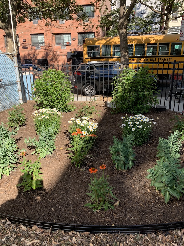 Flowers and Shrubs Planted by NYRP Daisies and Virburnum June 2021