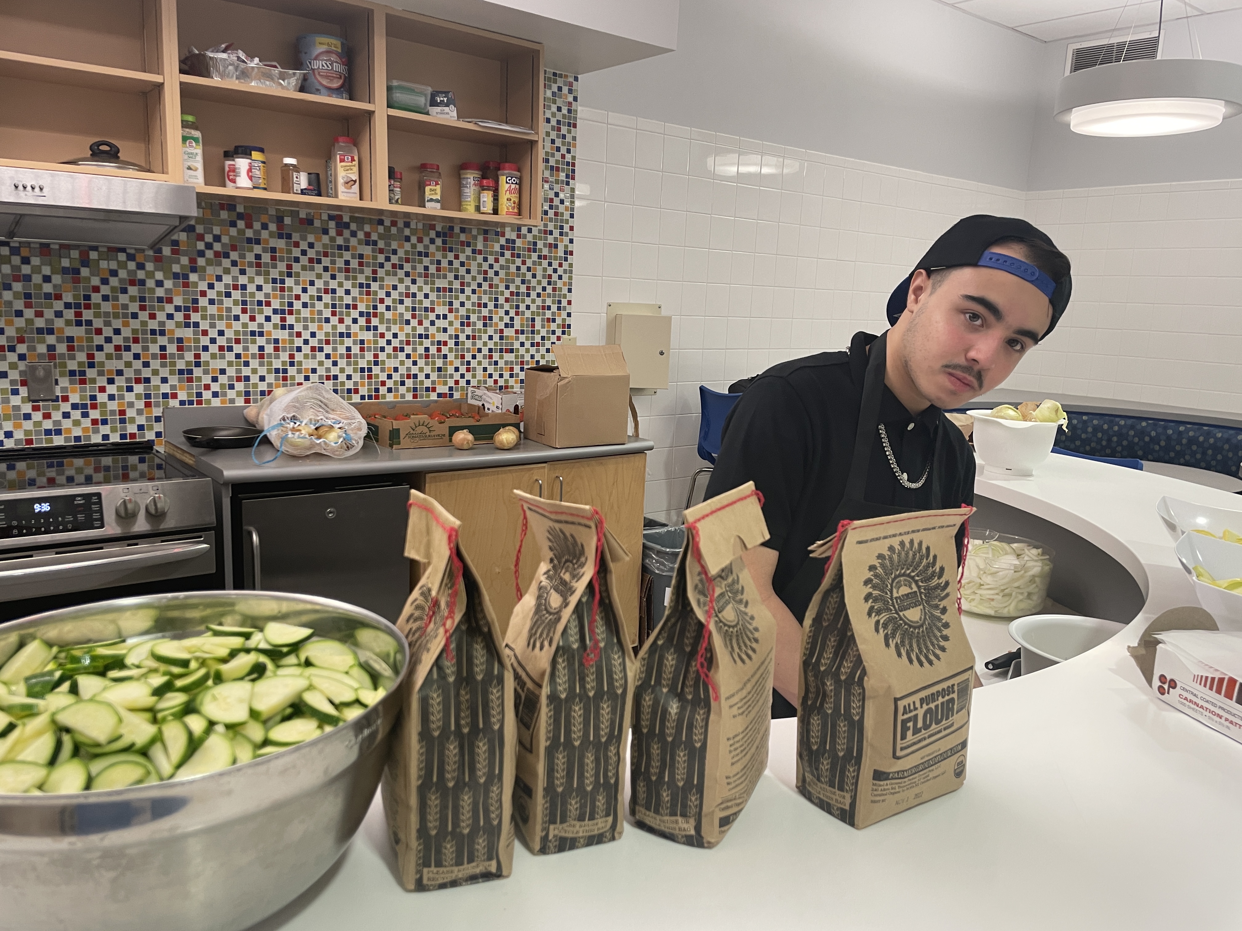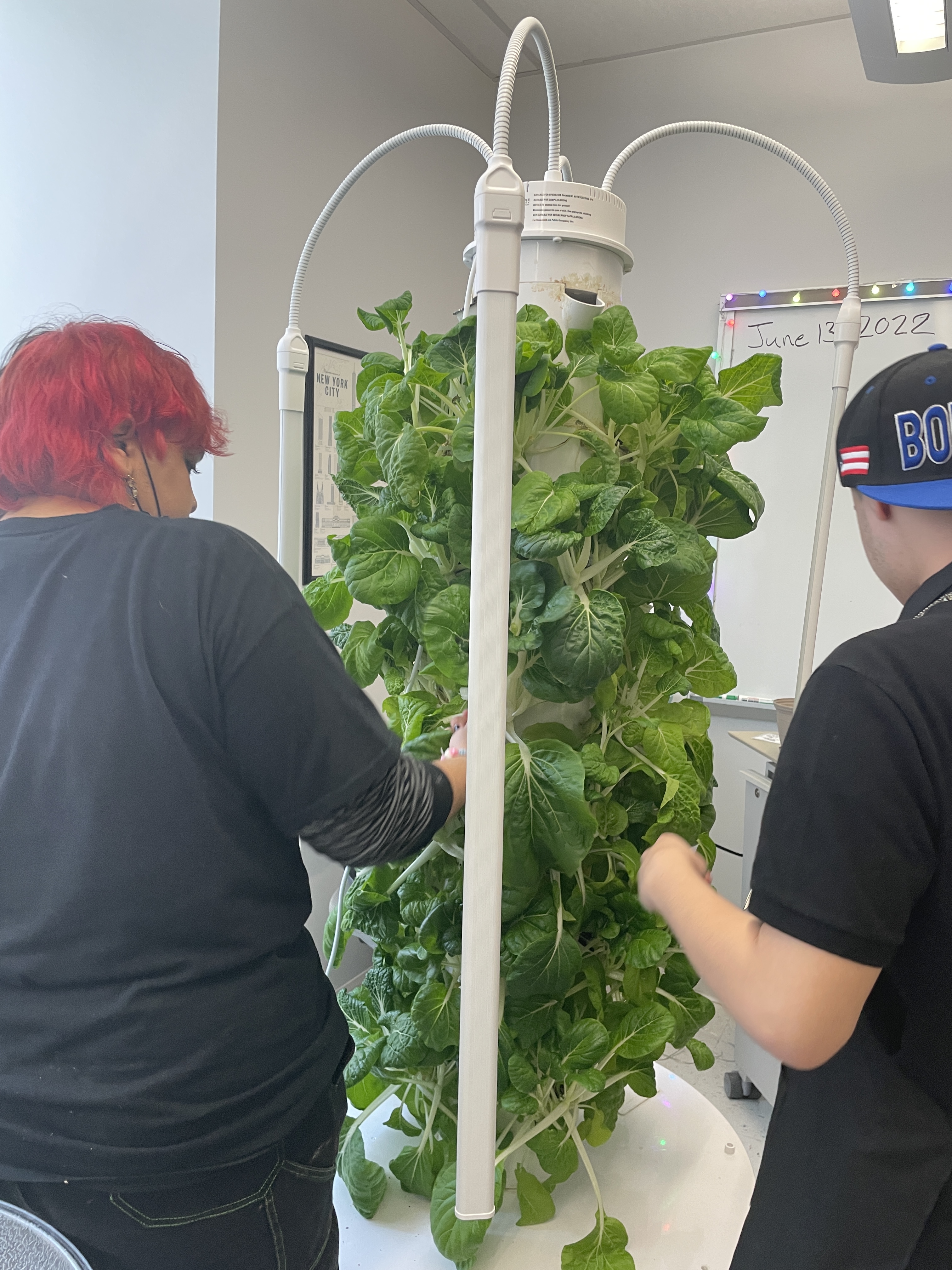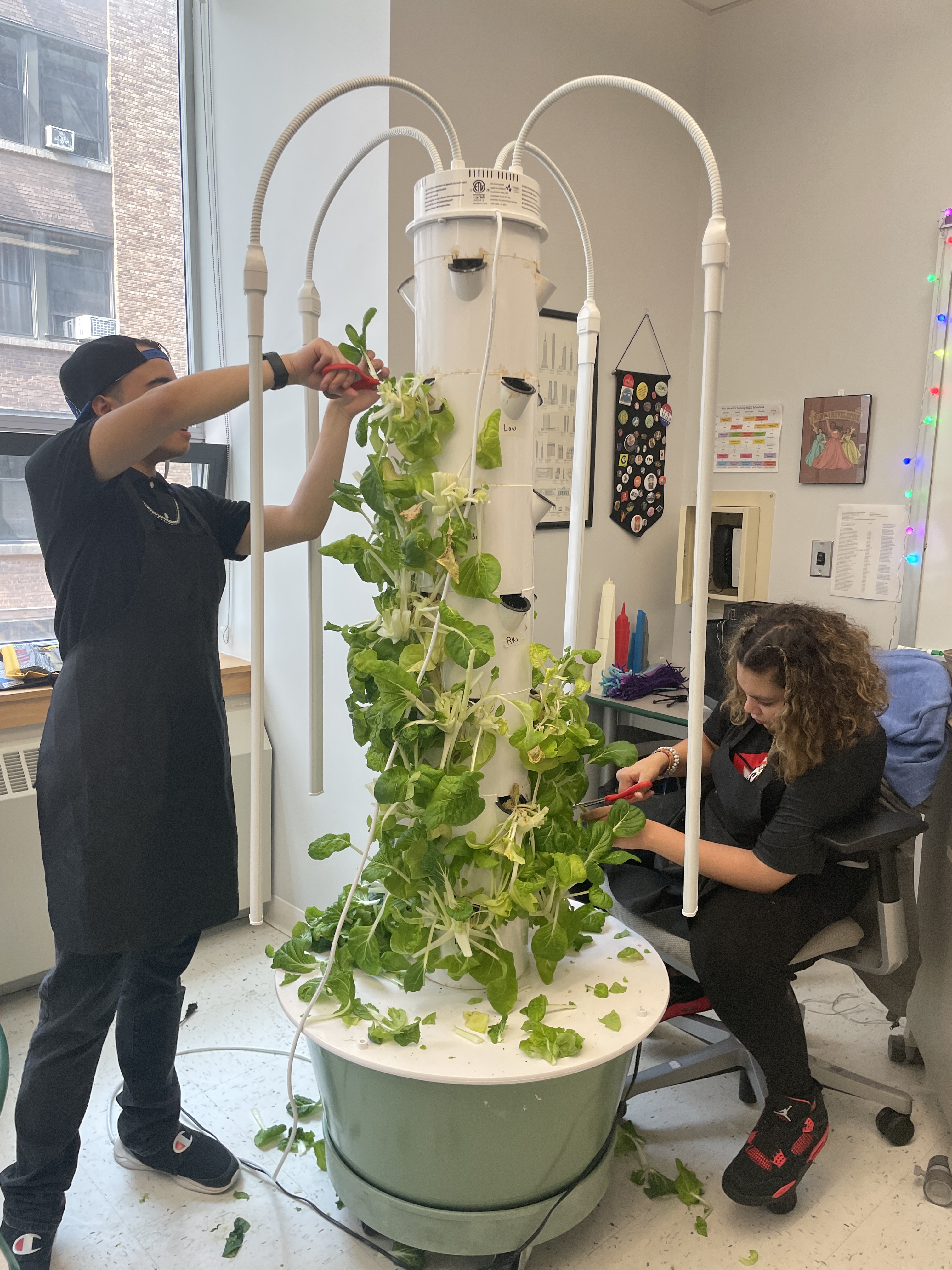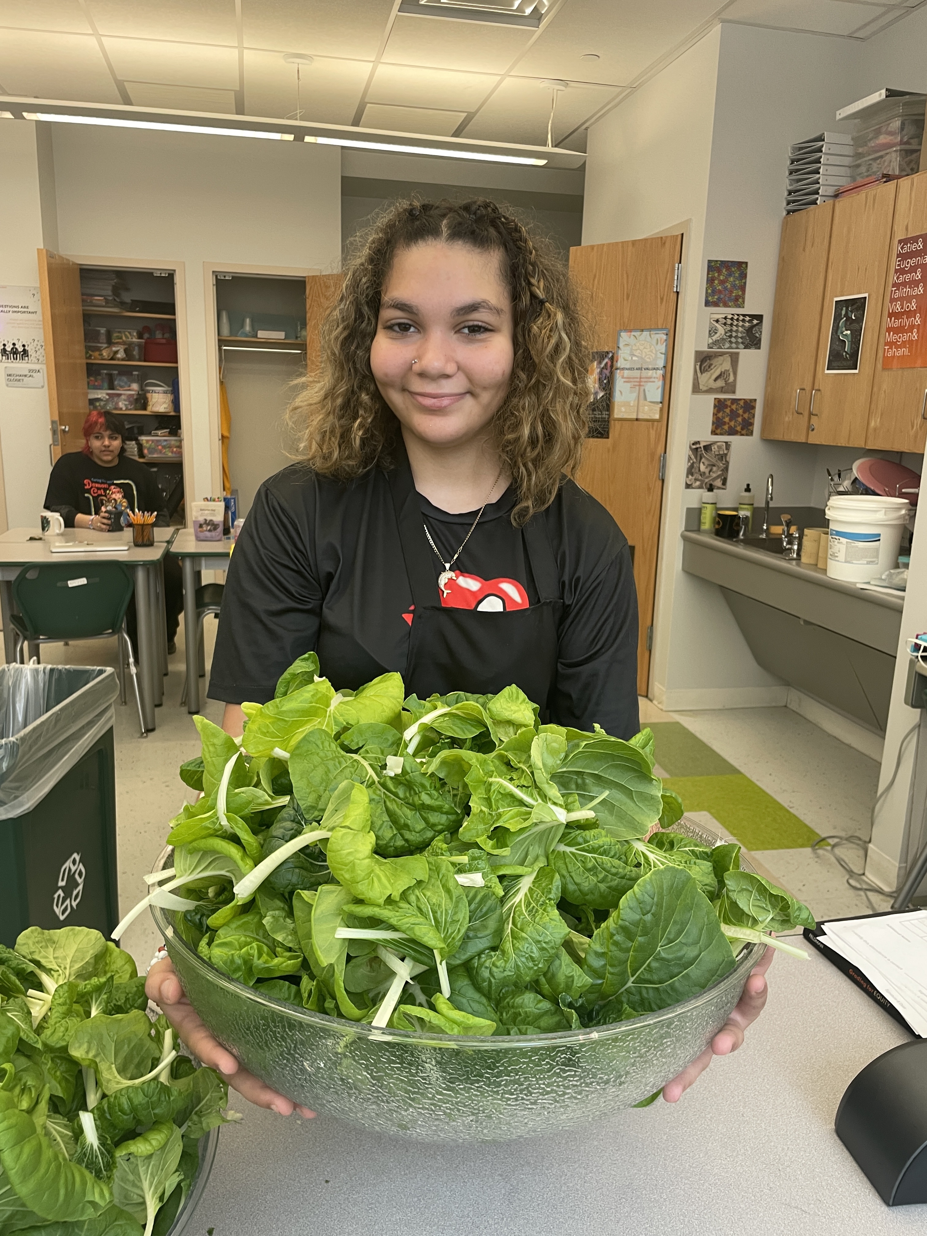 Chef George paid a visit to 35M @ Beacon last week to help the students prepare a delicious lunch of bean tacos with sauteed zucchini and salsa, and a bok choy salad with blueberry balsamic vinaigrette. Students prepped the zucchini, mixed and pressed the fajita dough from scratch, harvested the bok choy from Mr. Heath’s Tower Garden, and mixed it with salad greens and tomatoes. Yum!