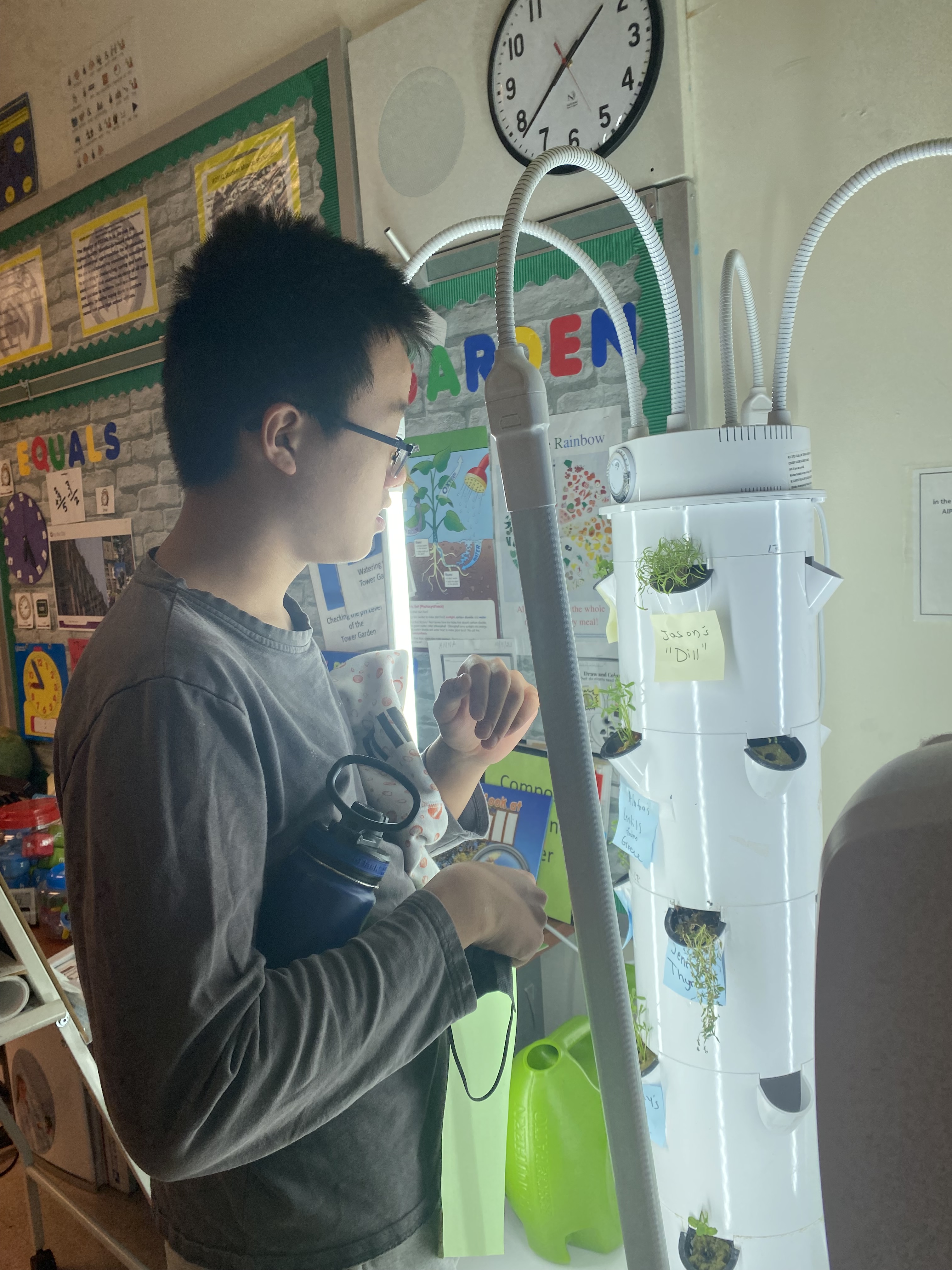 Check out some photos of the students from 233Q @ Metro High School as they prepare their tower garden, plant seeds, and harvest herbs for a snack!