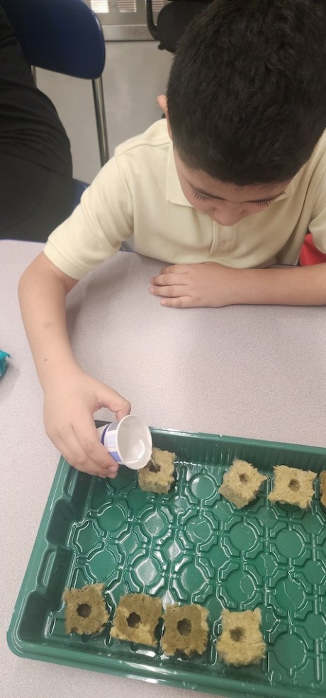 Students at 396K @ 91 planted seeds for their new Tower Garden in their brand new STEM Classroom. Stay tuned to see their progress!