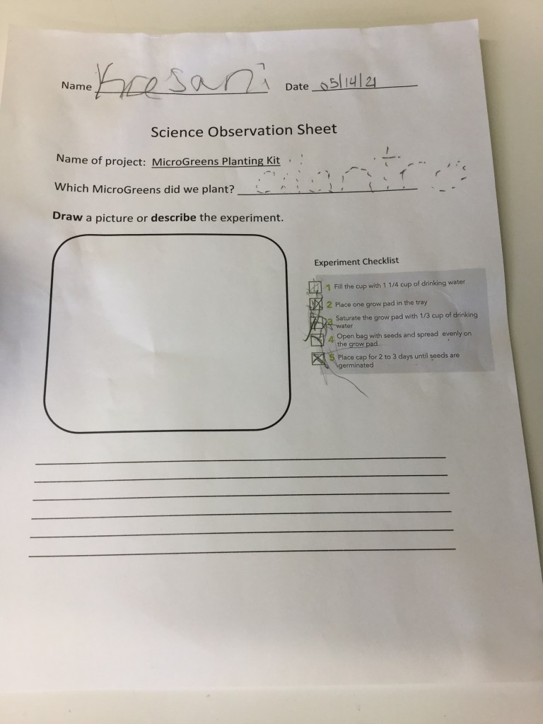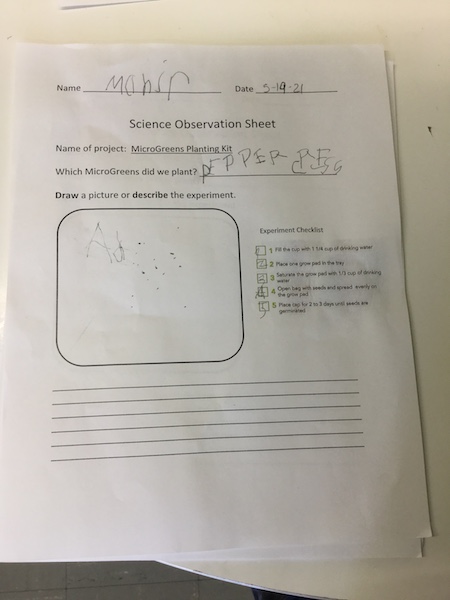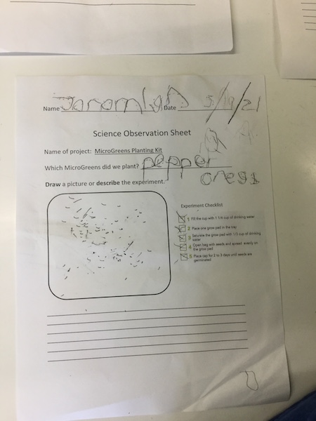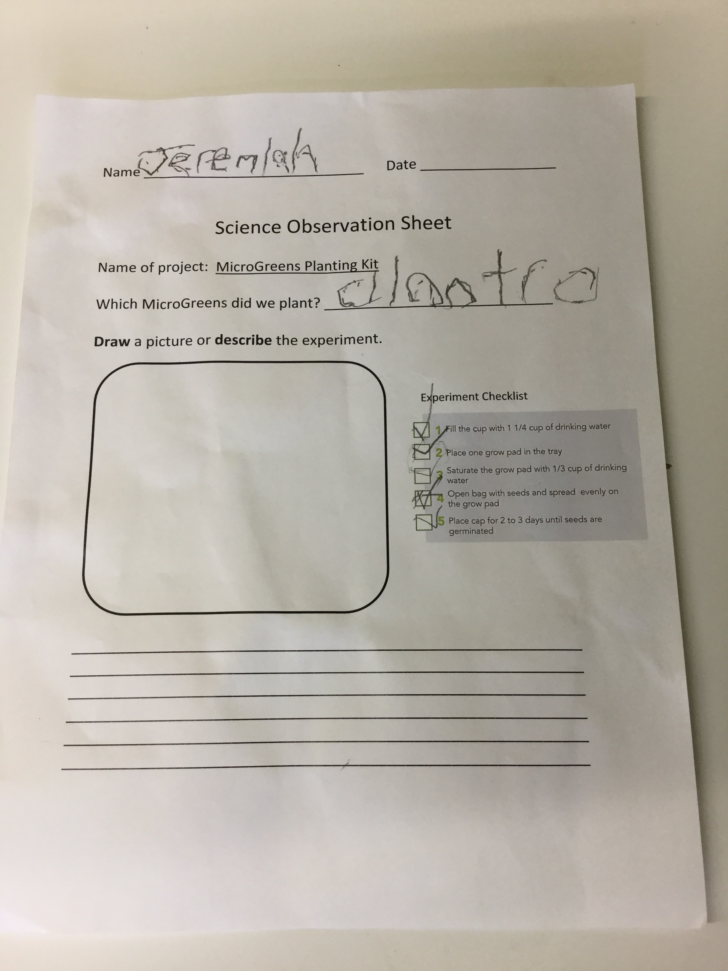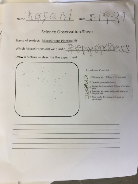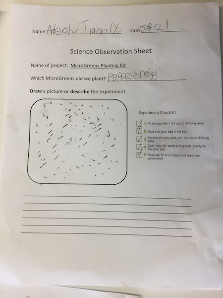 The students sowed their first seeds! They planted peppercress and cilantro (which is also know as coriander). They recorded data in their science observation sheets.