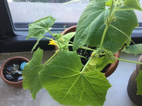 After a long wait, the gherkin produced female flowers. These are the flowers that have miniature cucumbers right behind the flower. No female flower, no fruit!
